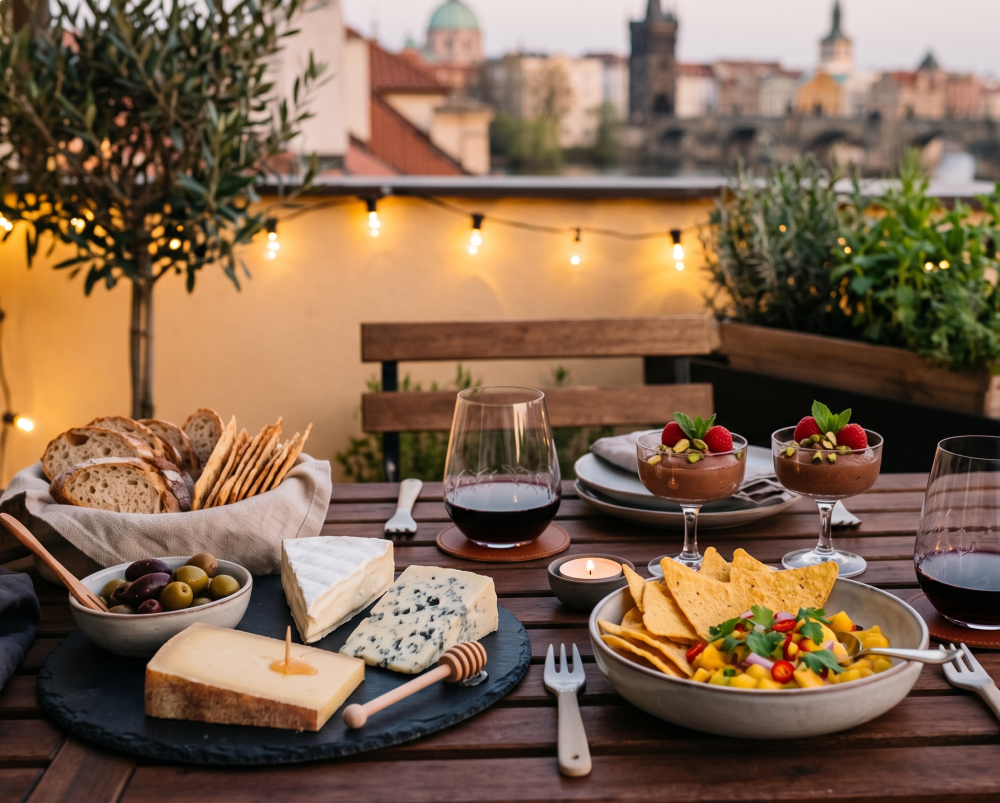 Neřešte detaily a složitá menu. Připravte si věci, které už máte rádi a třeba je máte doma – sýry, olivy nebo kousek čokolády k dezertu.